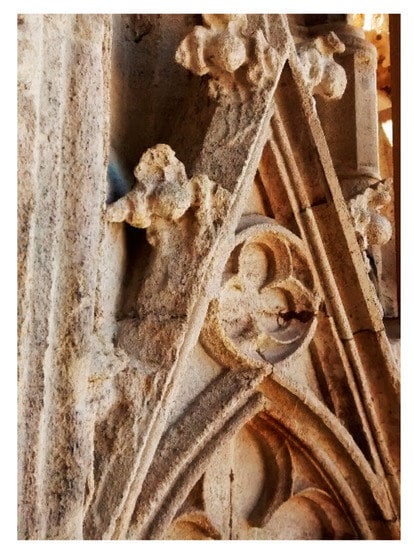 Stone is one of the most durable construction materials used in historic buildings. However, over time, the stone can be subject to various degradation processes leading to physical and chemical modifications [,,,,]. Although these effects may be limited to the surface and negligible to the structural stability of the affected buildings, they can represent a major problem in carved decorative elements of artistic value, where any detail should be preserved.