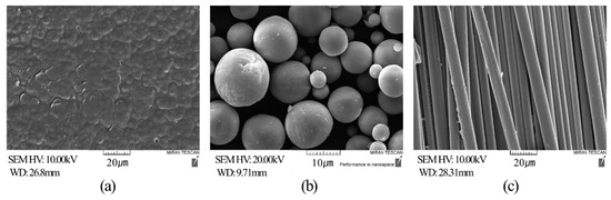 SEM images of raw materials (a) PA6; (b) Al2O3; (c) Carbon fiber.