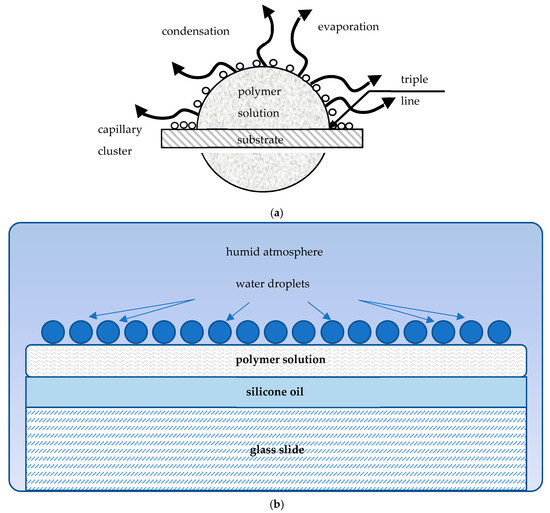 - Madej, W.; Budkowski, A.; Raczkowska, J.; Rysz, J. Breath figures in polymer and polymer blend films spin-coated in dry and humid ambience. Langmuir 2008, 24, 3517–3524. [Google Scholar] [CrossRef] [PubMed]