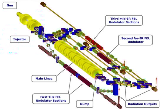 - Shevchenko, O.A.; Arbuzov, V.S.; Vinokurov, N.A.; Vobly, P.D.; Volkov, V.N.; Getmanov, Y.V.; Gorbachev, Y.I.; Davidyuk, I.V.; Deychuly, O.I.; Dementyev, E.N.; et al. The Novosibirsk free electron laser—Unique source of terahertz and infrared coherent radiation. Phys. Procedia 2016, 84, 13–18. [Google Scholar] [CrossRef]