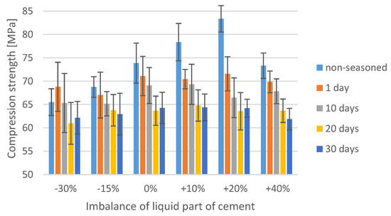 Compression strength after seasoning in Ringer’s solution of samples with an unbalanced mix ratio.