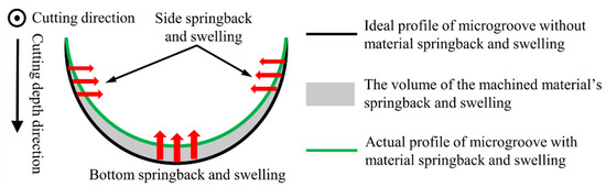 Schematic view of the material swelling and springback in the machining of micro-groove.