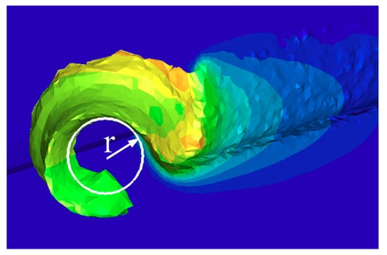 Chip generation has a significant impact on a workpiece surface’s finish, tool life, and overall cutting operations [39]. Liu et al. [25] studied the 3D chip’s morphology during the 17-4PH orthogonal cutting process. The influence of different microgroove tools on chip curling is illustrated by analyzing the degree of chip curling after cutting. Defining a method for measuring the degree of chip curl was used to measure the radius of the bend based on chip formation. A larger radius indicates a smaller degree of curling, and the opposite indicates a greater degree of curling.