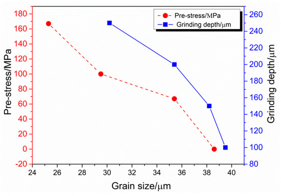 Grain sizes of different pre-stresses and grinding depths.