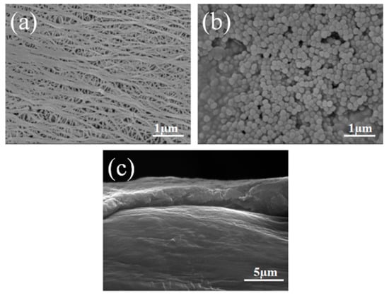 As one of the key components, a separator plays a crucial role in the performance of LIBs and is called the “third pole” of LIBs as well. On the one hand, the separator acts as the barrier that separates the positive and negative electrodes; this ensures the safety of LIBs during application. On the other hand, it is a porous membrane that allows for the rapid transportation of lithium ions between the positive and negative electrodes during electrochemical charge-discharge processes [5,6]. Current commercial LIB separators mainly include wet and dry laying polyolefin separators, such as polyethylene (PE) and polypropylene (PP). Polyolefin separators can be widely used in LIBs due to their good mechanical strength, good thermal shutdown properties, excellent electrochemical stability and low price. However, commercial polyolefin separators suffer from thermal contraction at higher temperatures; this causes some safety problems for LIBs. Meanwhile, polyolefin separators have poor wettability to the electrolytes and this severely limits the long-term life cycle of LIBs and its capacity retention at high rates [7,8].