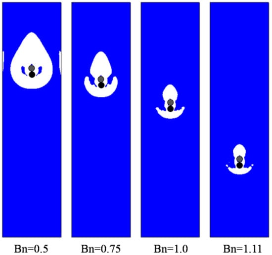 The sedimentation process of particles in Bingham fluid is further simulated. For Bingham fluids, results are often expressed as the Bingham number (Bn), defined as Equation (9):