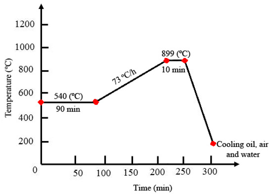 The cycle of AISI 4130 of furnace hardening heat treatment [27].