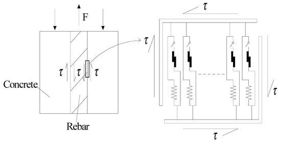 In order to mimic the corresponded relationship of the rebar-concrete interface, a representative interface element (RIE) in mesoscale was firstly introduced in this work, which consists of a parallel system of microscopic elements (see Figure 3). In detail, based on Equation (4), the bond stress of the k-th microscopic element was defined such that (k = 1, 2, 3, ···, N)