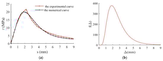 Specifically, Figure 10 illustrates the effectiveness of the proposed model for characterizing the stochastic mechanical behaviors of the interface. It shows that the proposed model enable us to capture the random nature of the interface by the derived expression of the variance, based on the micro mechanics and random variable theory [,]. In detail, the proposed model is able to describe both the mean and variance value of the bond stress-slip behaviors (see Figure 6 and Figure 7, Figure 9 and Figure 10) and promotes the development and application of statistical mechanics and random variable theory by deriving the expression of variance in Section 2, Section 3, Section 4 and Section 5. Moreover, the literature [] has considered that this expression is very difficult to be obtained and further study is needed in the future, due to the complexity of related theoretical analysis.