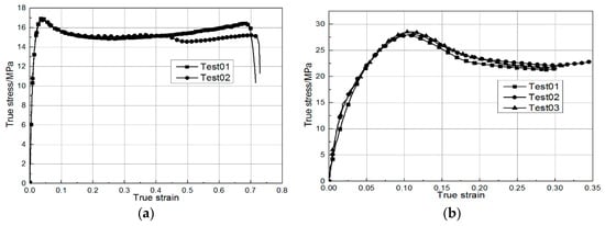 True stress–true strain curves of polypropylene material. (a) Tension. (b) Compression.