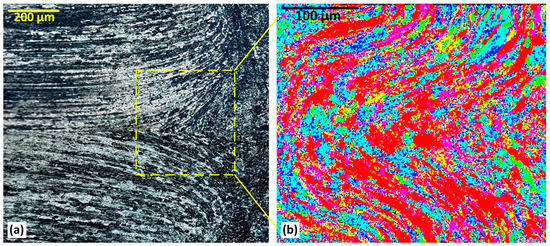 - Prangnell, P.; Heason, C. Grain structure formation during friction stir welding observed by the ‘stop action technique’. Acta Mater. 2005, 53, 3179–3192. [Google Scholar] [CrossRef]
