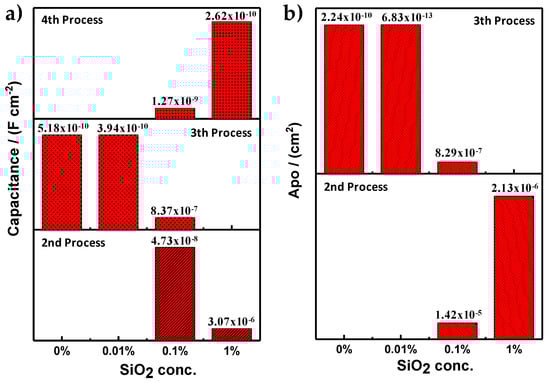 | Sample | Process | RE (Ω⋅cm2) | RPRO (Ω⋅cm2) | Capacitance (F⋅cm−2) | APO (cm2) |