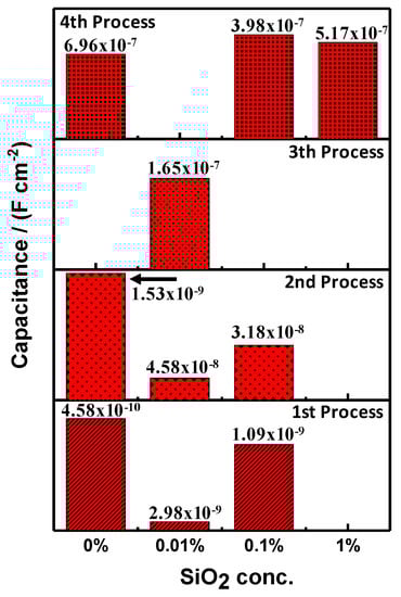 | PMMA + SiO2 0.01% | −155 | 3.090 × 10−7 | 3.588 × 10−6 |