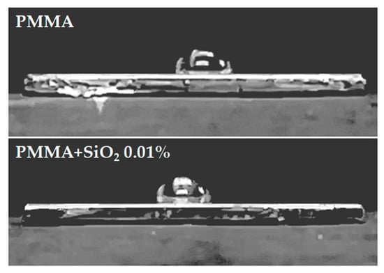 | PMMA + SiO2 0.01% | 87.06 ± 0.78 |
