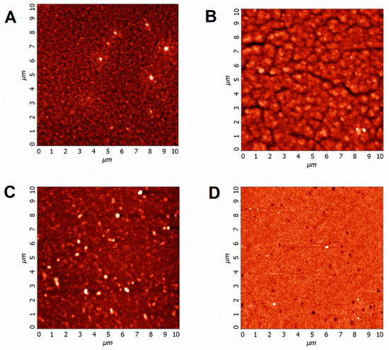 AFM images (10 × 10 µm) of spin-cast PbS QDs (d = 4 nm) films: (A) With native oleic acid capping; (B) after TBAI solid-state treatment; (C) after colloidal MAI-treatment; (D) after colloidal PbI2 treatment.
