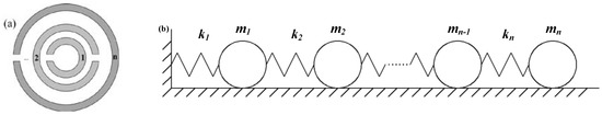 (a) The cross section of multilayer split hollow spheres (MLSHSs). (b) Schematic diagram of multiple spring oscillators in series.