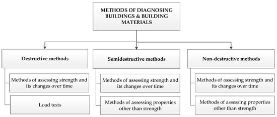 A general classification of non-destructive methods that are useful for diagnosing buildings and building materials [3] is presented in Figure 2.
