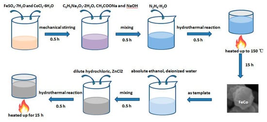 The schematic of the synthetic progress for the FeCo/ZnO composites.