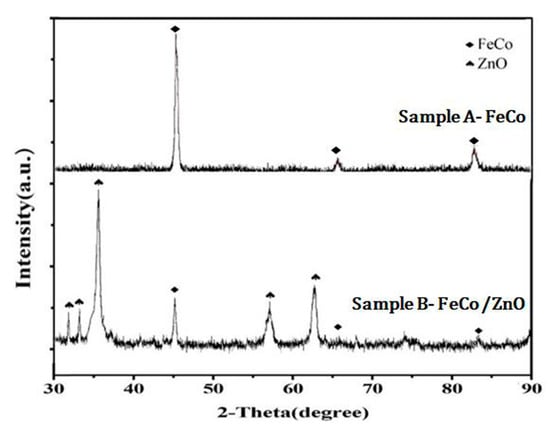 XRD diagram of FeCo single-phase solid solution and FeCo/ZnO composite.