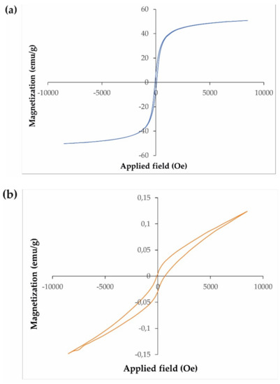 Obtaining aseptic conditions for several commercial products is the main factor associated with public health problems. In recent years, several researchers have attempted to discover and develop new strategies against organic pollutants [1,2,3]. The cosmetics, leather, paper, plastics, and textile industries, among others, produce many pollutants, including colour contaminants, that are carcinogenic to mammals due to their use of dyestuffs and chemical materials [4,5]. Nanoparticles that are effective for combining various original properties in a single nanoplatform have received considerable attention [1,4,5]. Currently, one of the most investigated tools to eliminate harmful contaminants from water are photocatalytic materials [6,7,8,9,10,11,12,13,14,15,16,17,18,19]. Magnetic nanoparticles act as heterogeneous catalysts that can easily separate a catalyst from a reaction system with the aid of an added magnetic field [19,20,21,22]. Furthermore, the use of H2O2 to improve photocatalytic results under visible and UV light has been reported in previous studies [23,24].
