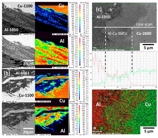 - Chen, C.Y.; Chen, H.L.; Huang, W.S. Influence of interfacial structure development on the fracture mechanism and bond strength of aluminum/copper bimetal plate. Mater. Trans. 2006, 47, 1232–1239. [Google Scholar] [CrossRef]