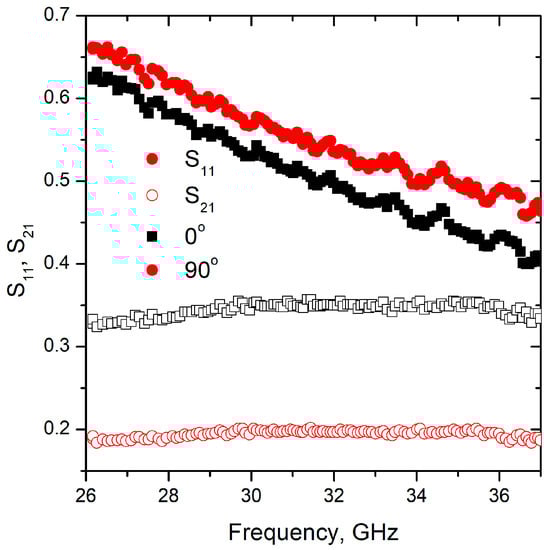 S-parameters of the aerogel/rGO-PUF with different orientation of the structure elements to incident irradiation polarization.