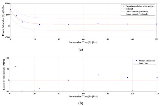 Graph of elastic modulus (Ey) for MM4520 for (a) fitted model and (b) residuals.