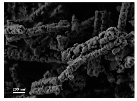 The samples were characterized by HRSEM/EDS, thermal analysis coupled with evolved gas analysis (MS), XRD and N2 adsorption-desorption. Samples of ~40 mg in 100 µL alumina crucibles were analyzed by simultaneous thermal gravimetric and differential thermal analyses (TGA/DTA) at ambient pressure (Setsys Evolution 1750, Setaram, Caluire, France). The samples were heated from 25 to 1100 °C at 5 °C∙min−1 under air flow of 20 ml∙min−1. The obtained data was treated using the Calisto Processing software (AKTS and Setaram). Morphology was investigated by HRSEM (ULTRA plus; Zeiss, Zurich, Switzerland).