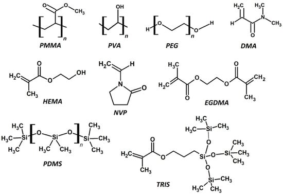 - Nicolson, P.C.; Vogt, J. Soft contact lens polymers: An evolution. Biomaterials 2001, 22, 3273–3283. [Google Scholar] [CrossRef]