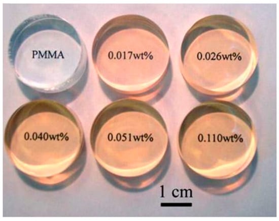 - Li, S.; Toprak, M.S.; Jo, Y.S.; Dobson, J.; Kim, D.K.; Muhammed, M. Bulk Synthesis of Transparent and Homogeneous Polymeric Hybrid Materials with ZnO Quantum Dots and PMMA. Adv. Mater. 2007, 19, 4347–4352. [Google Scholar] [CrossRef]