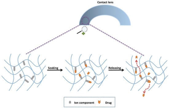 - Peng, C.C.; Kim, J.; Chauhan, A. Extended delivery of hydrophilic drugs from silicone-hydrogel contact lenses containing Vitamin E diffusion barriers. Biomaterials 2010, 31, 4032–4047. [Google Scholar] [CrossRef]