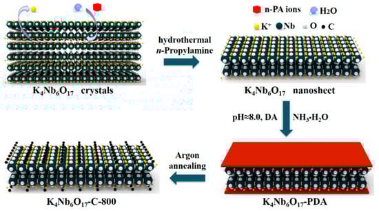 A schematic route for preparation of the K4Nb6O17-C-800.