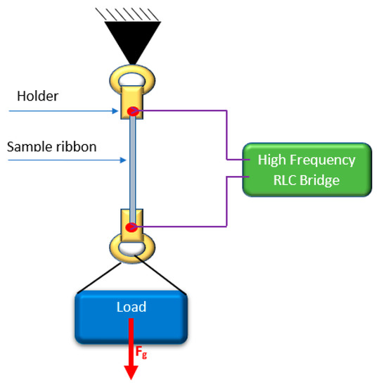 The impedance Z of the ribbon was measured by four-probe method using LCR Bridge (Microtest 6630E, New Taipei City, Taiwan). Research was carried out for low and medium impedance test frequencies (<5 MHz) with a driving current Irms equal 10 mA. Special program for controlling measurement system and collecting measurement data was developed in National Instruments LabVIEW environment (v.17, National Instruments, Austin, TX, USA).