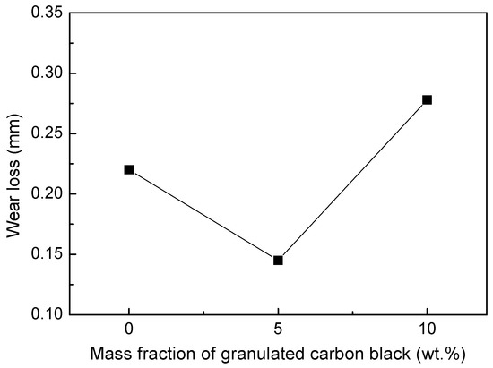 Effect of mass fraction of granulated carbon black on wear loss of materials.