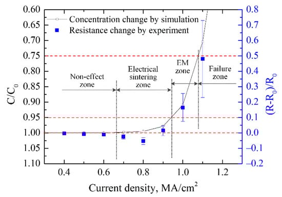 - Yao, W.; Basaran, C. Computational damage mechanics of electromigration and thermomigration. J. Appl. Phys. 2013, 114, 143–151. [Google Scholar] [CrossRef]