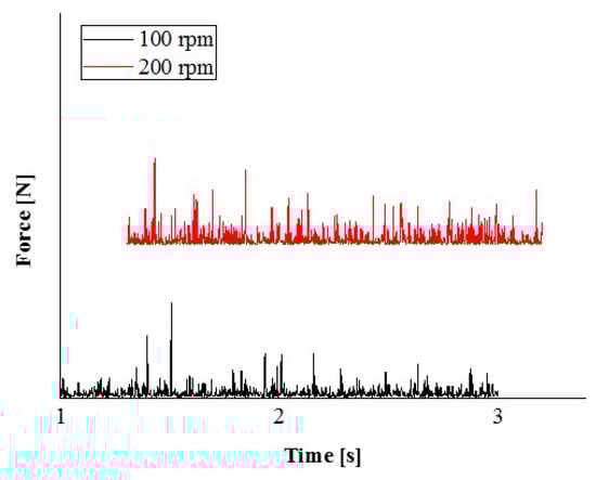 Impact force spectra of the balls in a traditional ball mill at different milling rotation speeds.