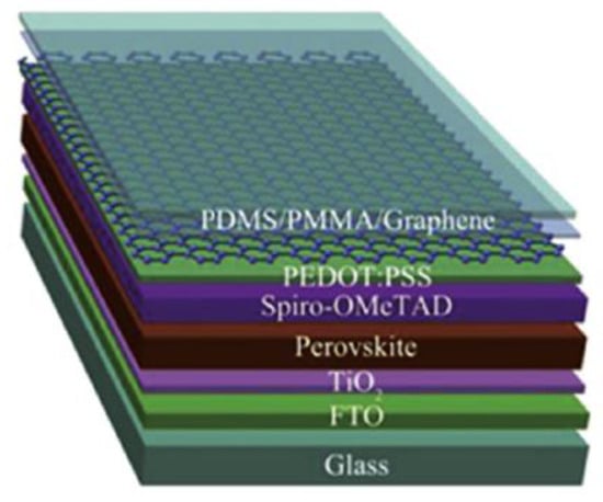 Schematic diagram of the semitransparent PSC using the graphene as top electrode. Reproduced with permission from reference [105].