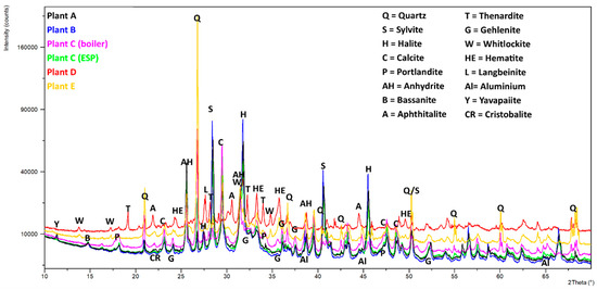 - Yang, Y.; Xiao, Y.; Wilson, N.; Voncken, J.H.L. Thermal behaviour of ESP ash from municipal solid waste incinerators. J. Hazard Mater. 2009, 166, 567–575. [Google Scholar] [CrossRef] [PubMed]