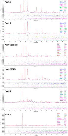 | Elements | Fly Ash A | Fly Ash B | Fly Ash C-boiler | Fly Ash C-filter | Plant D | Plant E |