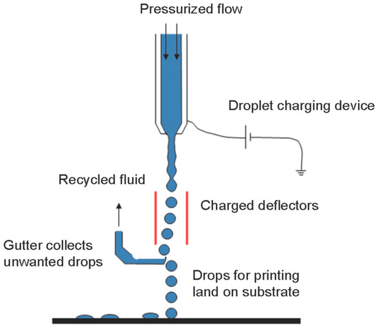 The material jetting techniques are the “AM processes in which droplets of build material are selectively deposited” [17], that can be used to manufacture different kinds of ceramic parts. Inkjet 3D printing technology was among the first material jetting AM techniques that were employed for additive manufacturing of ceramic parts. It was developed by Sachs et al. in 1992 at MIT and defined as a process for the manufacturing of ceramic casting cores and shells using inkjet 3D printing [1]. Figure 5 shows the Schematic of ink-jet 3D printing [34].