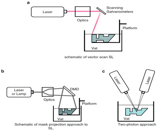 Schematic diagrams of three different techniques of photopolymerization [18].