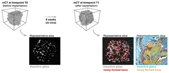- Westhauser, F.; Weis, C.; Prokscha, M.; Bittrich, L.A.; Li, W.; Xiao, K.; Kneser, U.; Kauczor, H.-U.; Schmidmaier, G.; Boccaccini, A.R.; et al. Three-dimensional polymer coated 45S5-type bioactive glass scaffolds seeded with human mesenchymal stem cells show bone formation in vivo. J. Mater. Sci. Mater. Med. 2016, 27, 119. [Google Scholar] [CrossRef]