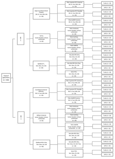- Braga, R.R.; Meira, J.B.; Boaro, L.C.; Xavier, T.A. Adhesion to tooth structure: A critical review of "macro" test methods. Dent. Mater. 2010, 26, e38–e49. [Google Scholar] [CrossRef] [PubMed]
