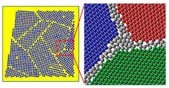 - Mayr, S.G.; Bedorf, D. Stabilization of Cu nanostructures by grain boundary doping with Bi: Experiment versus molecular dynamics simulation. Phys. Rev. B Condens. Matter Mater. Phys. 2007, 76, 024111. [Google Scholar] [CrossRef]