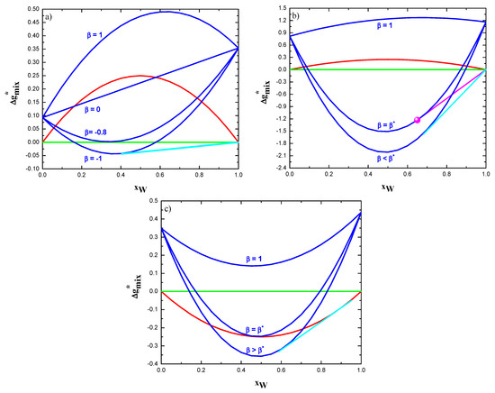 Substituting Equations (12) into Equation (11) and rearranging the molar Gibbs free energy of mixing can be expressed as