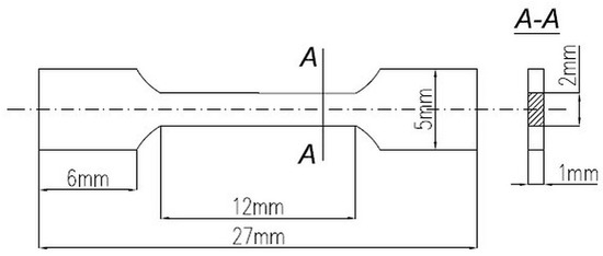 The Vickers hardness (HV10) of the samples was measured by using the Anova Hardness Tester (Innovatest, Maastricht, The Netherlands) under a load of 98 N (10 kg) and an indentation time of 10 s. The microhardness (µHV0.2) tests were performed using the PMT-3 tester under a load of 1.96 N (0.2 kg) for 10 s. The mechanical properties of the steel at room temperature were determined using a tensile testing machine MTS 858 with an extensometer 3542 Epsilon, with crosshead speed of 1 mm/min, according to EN ISO 6892–1:2011 [33]. Tensile specimen is shown in Figure 1. Five test specimens from the HIPping and heat treatment materials were tested. Fracture surface was observed by the SEM.