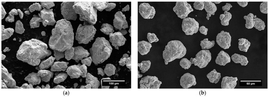 The MA process significantly changed a morphology of the Fe–18%Cr–12.8%Mn powder. Note, that the atmosphere of MA process (Ar or N2) has no influence on the morphology of both powders. Figure 3 shows SEM images of the powder particles after 1 h (Figure 3a) and 90 h of MA in nitrogen (Figure 3b), respectively. At the beginning of the MA process, a bimodal particle distribution of the powder was observed with irregular and aggregated shape. However, at the end of the process the particles were more regular and rounded with a smoother surface.