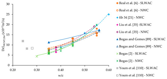 In the last decades, both liquid and gas fluids have been used to determine the permeability of SLWAC and NWC. Several authors have demonstrated that the water permeability can be similar in SLWAC and in NWC [2,13,35,37,38,47,48,49,50,51].