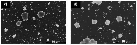 The morphologies of the four examined powders obtained at various temperatures are shown in the micrographs in Figure 3.