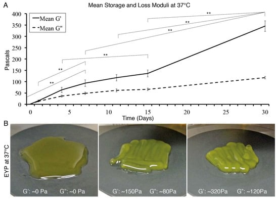 | 3 | N/A | EYP → GEYP | - Rotational rheometer - −20 °C Freezer | - 0, 1, 4, 7, 11, 15, 30 days - Storage Modulus (G’) - Loss Modulus (G’’) |